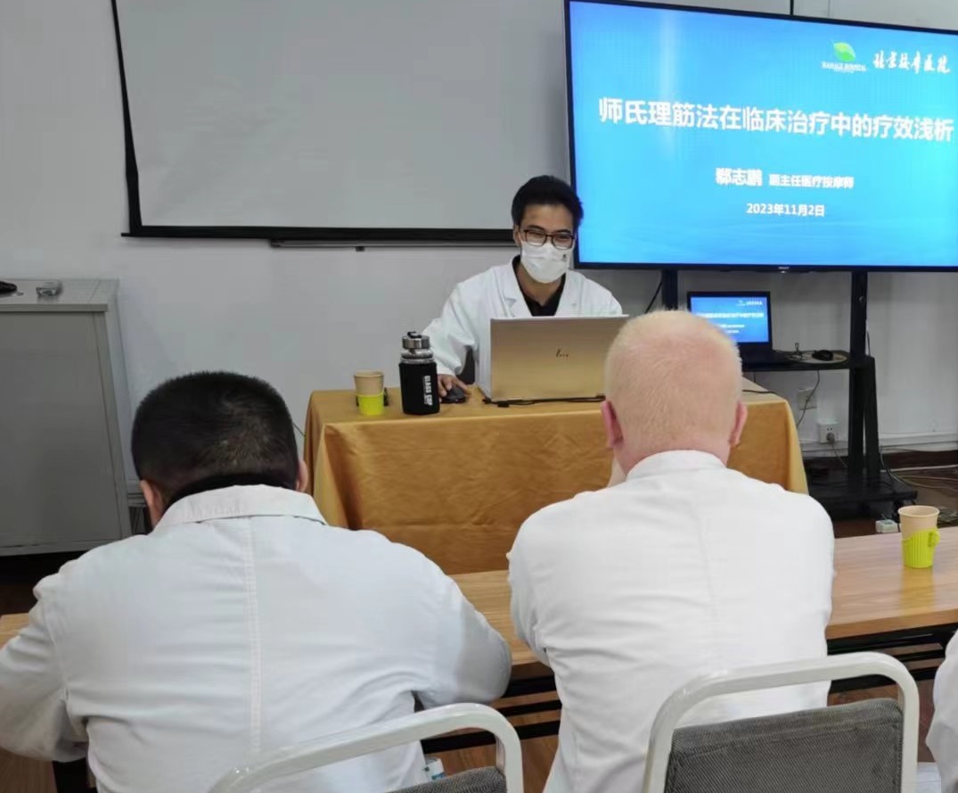 本期實(shí)訓(xùn)結(jié)合學(xué)員學(xué)習(xí)需求,遴選推拿一科郗志鵬、駱文,推拿二科毛宇非以及推拿三科陳慧英等副主任醫(yī)療按摩師作為實(shí)訓(xùn)帶教師資,通過(guò)考核評(píng)估、提問(wèn)互動(dòng)、操作演示與“手把手”教學(xué)等,讓學(xué)員在臨床跟診中學(xué)習(xí)了解常見(jiàn)病診斷的思路方法以及推拿治療的要點(diǎn)難點(diǎn)。同時(shí),為更好提升學(xué)員理論知識(shí)水平,強(qiáng)化實(shí)踐操作練習(xí),實(shí)訓(xùn)期間安排本次帶教老師開(kāi)展集中授課,內(nèi)容包括失眠、頭痛、胃脘痛疾病特色診療,師氏理筋法在臨床治療中的療效淺析,從了解疾病的發(fā)病和演變過(guò)程實(shí)現(xiàn)認(rèn)知升級(jí),手法升級(jí)運(yùn)用推動(dòng)由“匠”向“師”的蛻變等內(nèi)容。