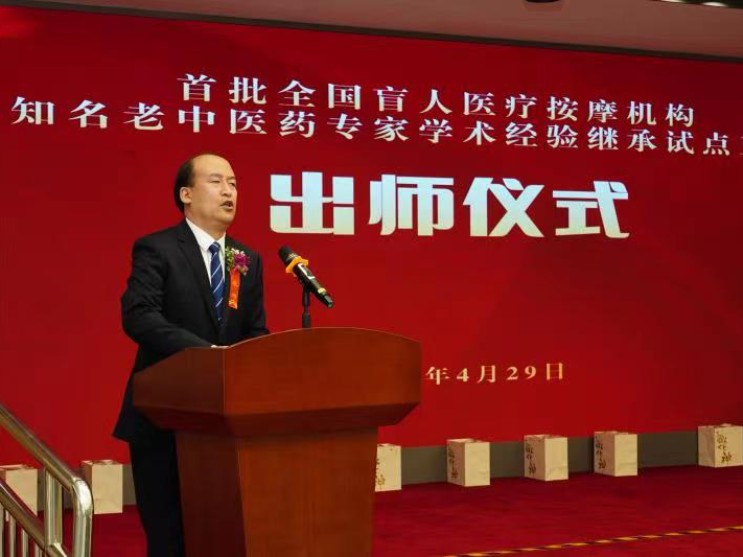 在首批全國(guó)盲人醫(yī)療按摩機(jī)構(gòu)知名老中醫(yī)藥專家學(xué)術(shù)經(jīng)驗(yàn)繼承試點(diǎn)工作出師儀式上的發(fā)言稿