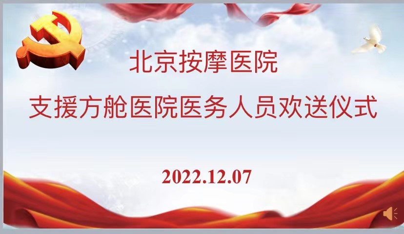 有一種使命叫全力以赴,有一種擔(dān)當叫勇敢逆行。2022年12月7日,北京按摩醫(yī)院為即將奔赴新航公寓健康驛站B區(qū)方艙醫(yī)院的7名醫(yī)療隊員舉行了簡短而隆重的送行儀式。